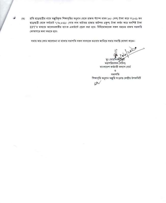 বাংলাদেশ কর্মচারী কল্যাণ বোর্ড এসএসসি বৃত্তি