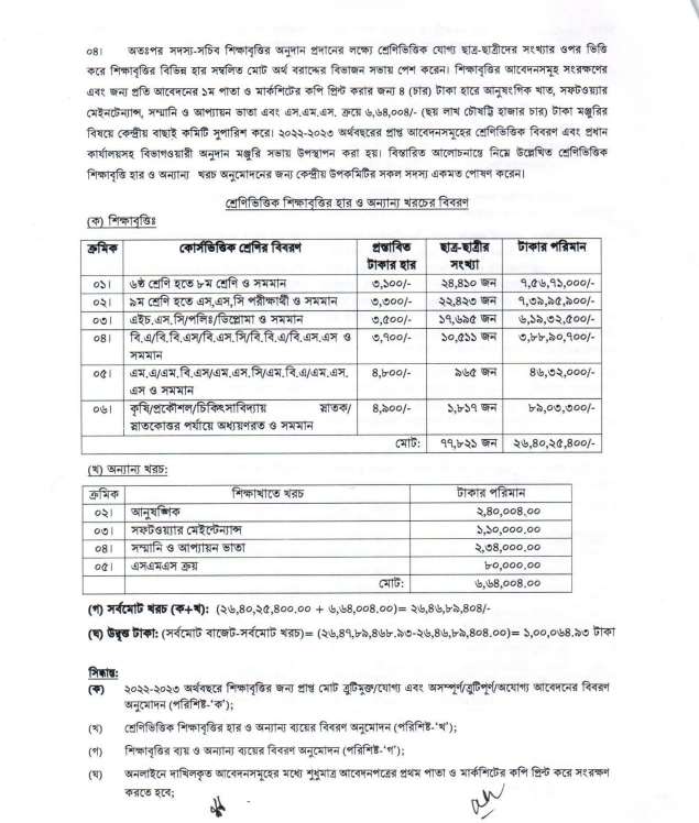 • চাকরিরত, অনিয়মিত এবং বিবাহিত ছাত্র বা ছাত্রীগণ শিক্ষাবৃত্তি লাভের যোগ্য বলে বিবেচিত হবেন না।