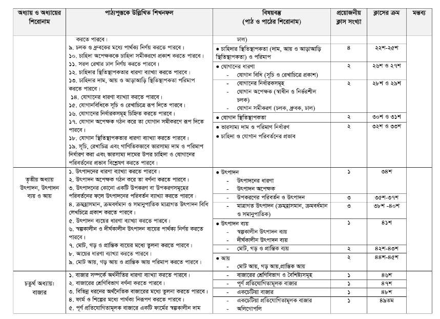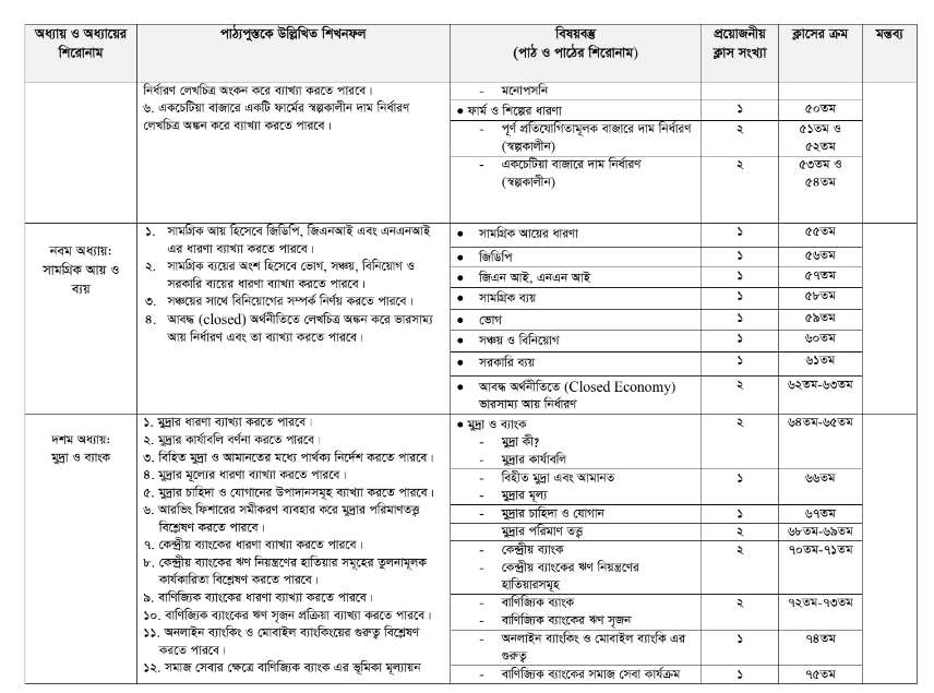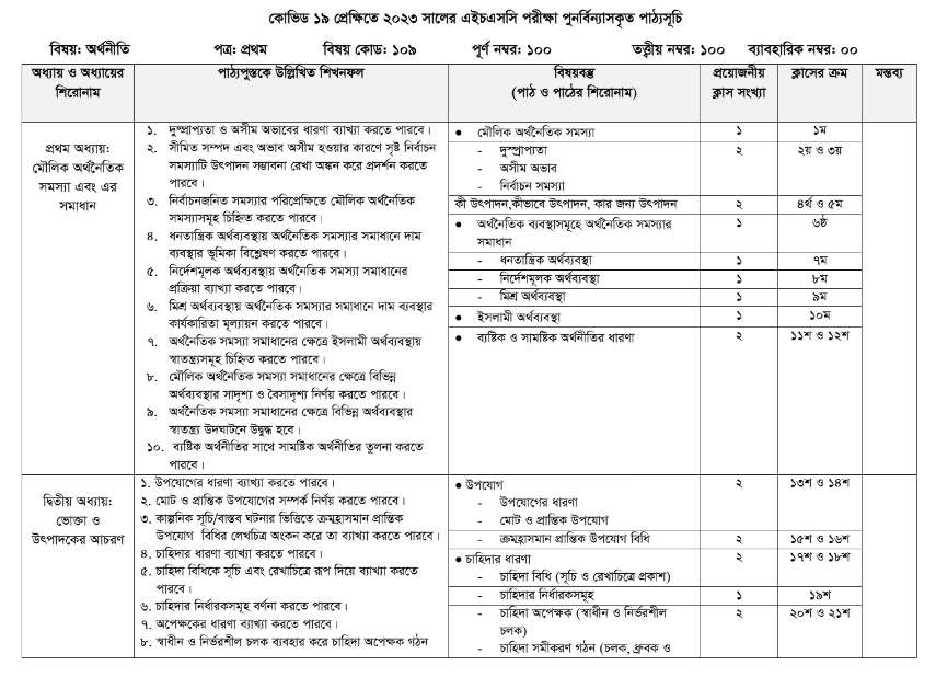 ২০২৪ সালের এইচএসসি সংক্ষিপ্ত সিলেবাস অর্থনীতি ১ম পত্র